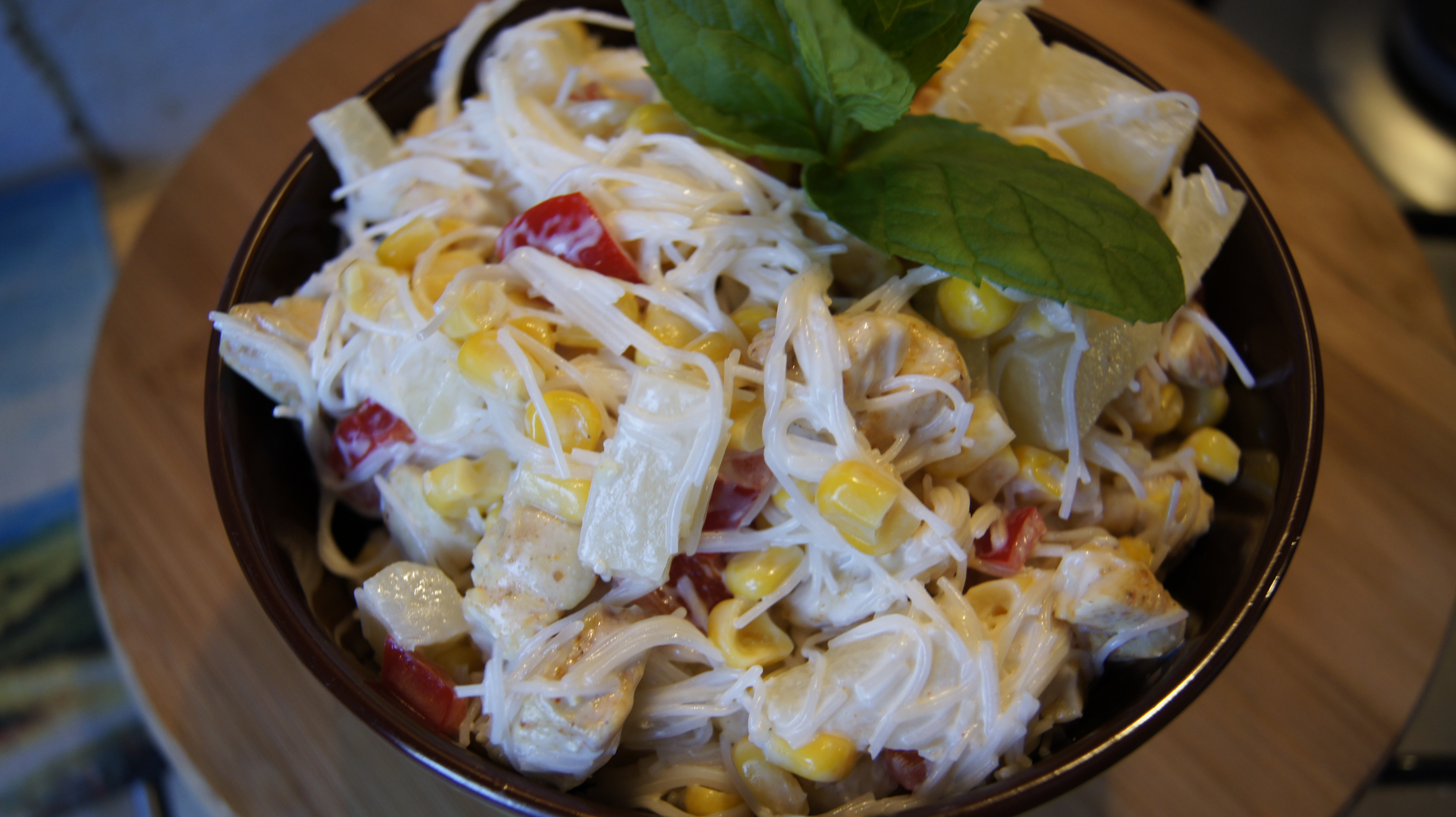Sałatka z makaronem ryżowym i kurczakiem
