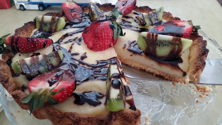 Tarta z kremem budyniowym i owocami